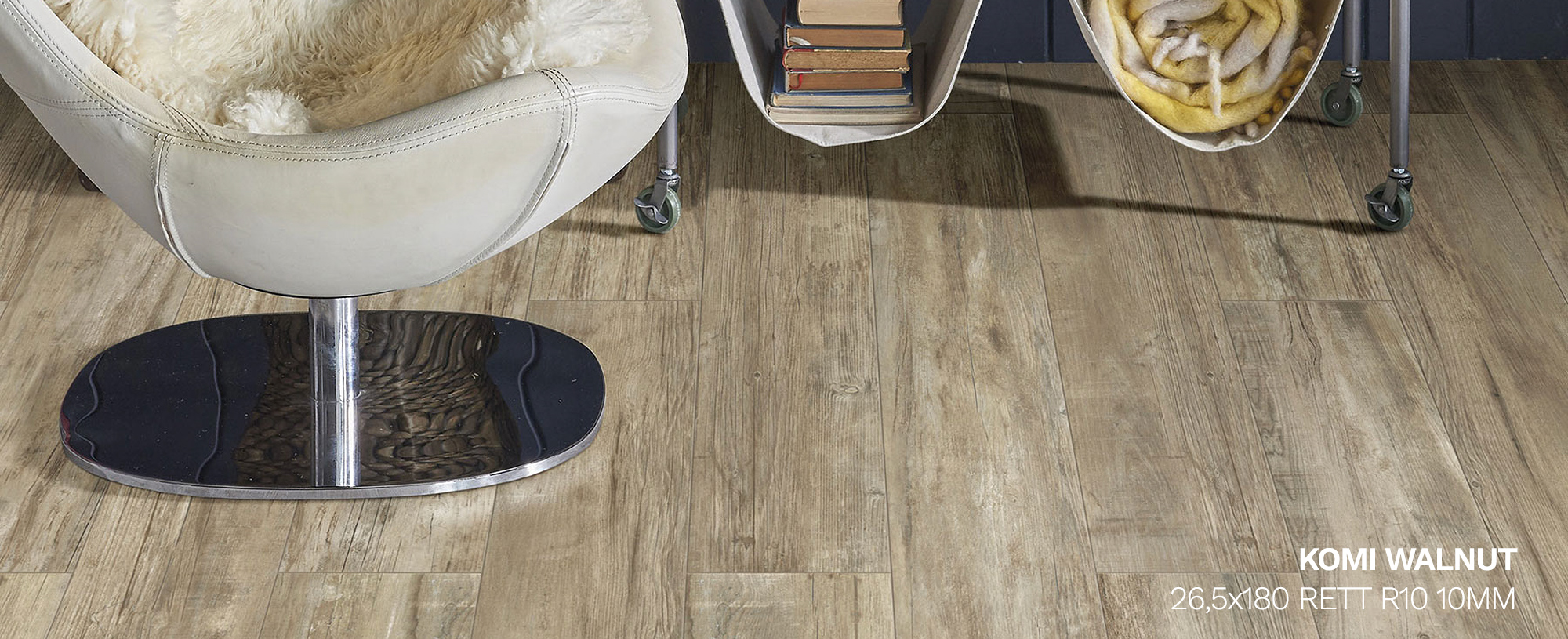 Komi by Ceramica Flaminia is a wood-effect ceramic tile collection that combines the natural elegance of wood with the strength and practicality of porcelain stoneware. Offered in the warm tones Walnut and Brown, and in the generous 26.5×180 rectified format, Komi furnishes contemporary spaces with refined simplicity, conveying visual warmth and sophistication. An ideal solution for those who want the atmosphere of wood with the performance of ceramic, both in residential and commercial settings.
